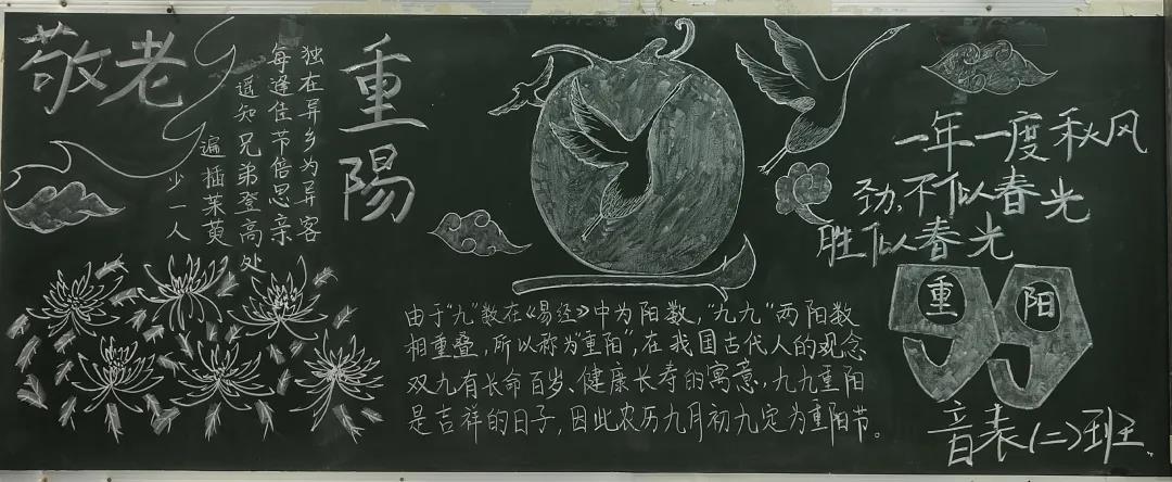 10月9日伟德国际victor1946以班级为单位开展了“九九重阳节,浓浓敬老情”主题黑板报活动。各班积极准备了黑板报内容,弘扬敬老爱老传统美德,提高了同学们投身于实践的热情,增加了同学们的获得感与参与感。活动结束后,从众多黑板报作品中选出了3版优秀作品。