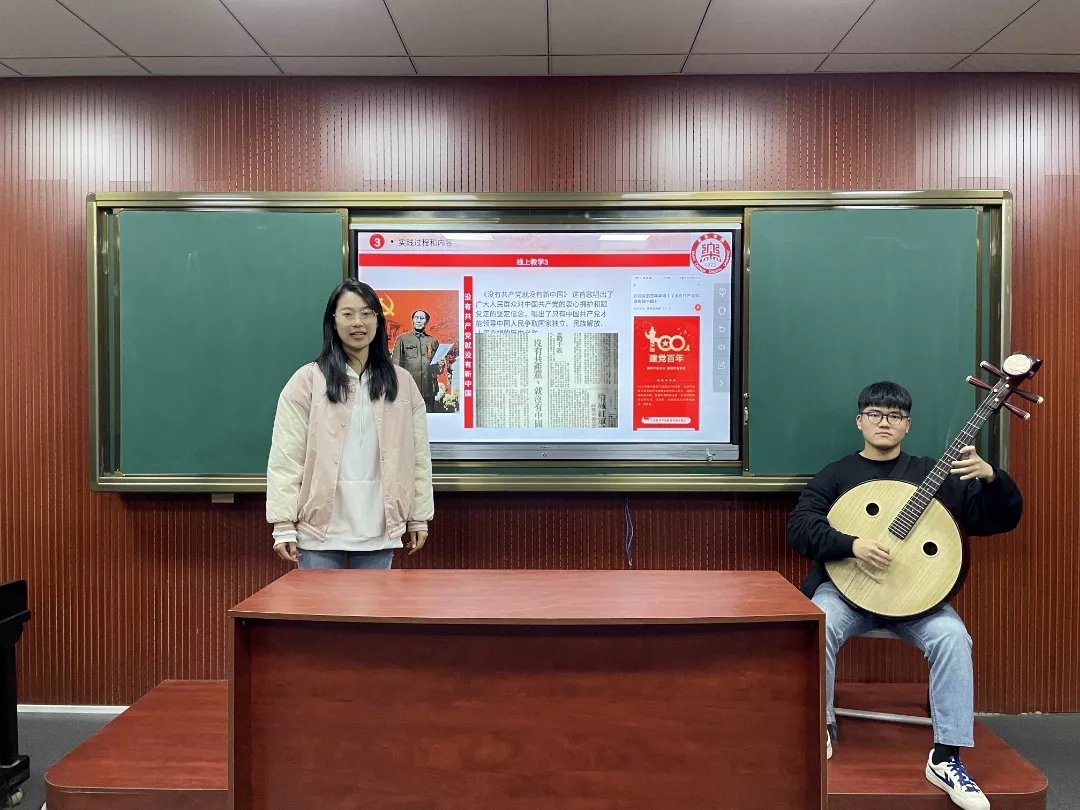 “知音知心·强国有我”社会实践团队主打特色是线上线下穿插式教学。充分发挥各成员本身的优势特点,利用信息化手段,有计划、有步骤、科学规范开展线上线下穿插教学,做到了教中有学、学中有教。线下宣传与实际辅导,深入到社会群众中去,在强调公益性活动的前提下,进行广泛宣传,吸引对音乐感兴趣的孩子们,并利用线上(钉钉APP)进行课程的教学,同时对音乐历史及党史进行了相结合的讲解,使课程内容更加立体、饱满,充分激发了孩子们的兴趣,教学成果显著。