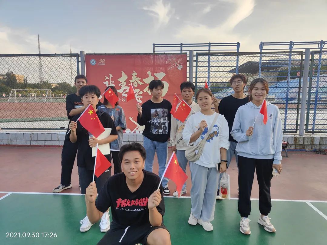 在祖国成立的七十二岁诞辰之际,青年学生们用一张张合影,来表达对祖国的热爱和祝福。在镜头下,一张张洋溢的笑脸映衬着手中那鲜红的国旗,构成了一幅幅动人的画面,这都在传递着学生们那赤诚的爱国之心。这一面面鲜艳的国旗也在时刻警示着同学们珍惜眼前的幸福和平,不忘初心,砥砺前进。