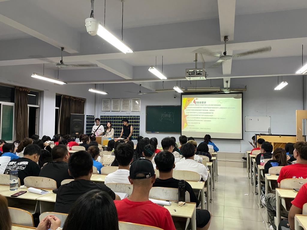 此次会议的主题是让“预防为主、防治结合、教育为先”的意识贯穿融入到新生的整个大学日常生活中,此次安全知识宣讲内容紧紧围绕学生宿舍安全管理体系。其中,学生宿舍安全知识是重点内容,包括不使用违规电器、不私拉乱接电线、不在寝室内随意点蚊香、保管好贵重物品、不随意购买混入宿舍各种流窜商贩兜售的任何商品、防诈骗等。会议中,播放了学生更容易记住的动态PPT图片,并结合宿舍安全工作中的经典案例,用同学们喜欢的方式让他们记住宿舍安全管理的重要性。在此过程中同学们认真聆听,达到了加深安全防范意识的效果。此外,详细介绍了学生宿舍的安全管理体系及应急处理流程。