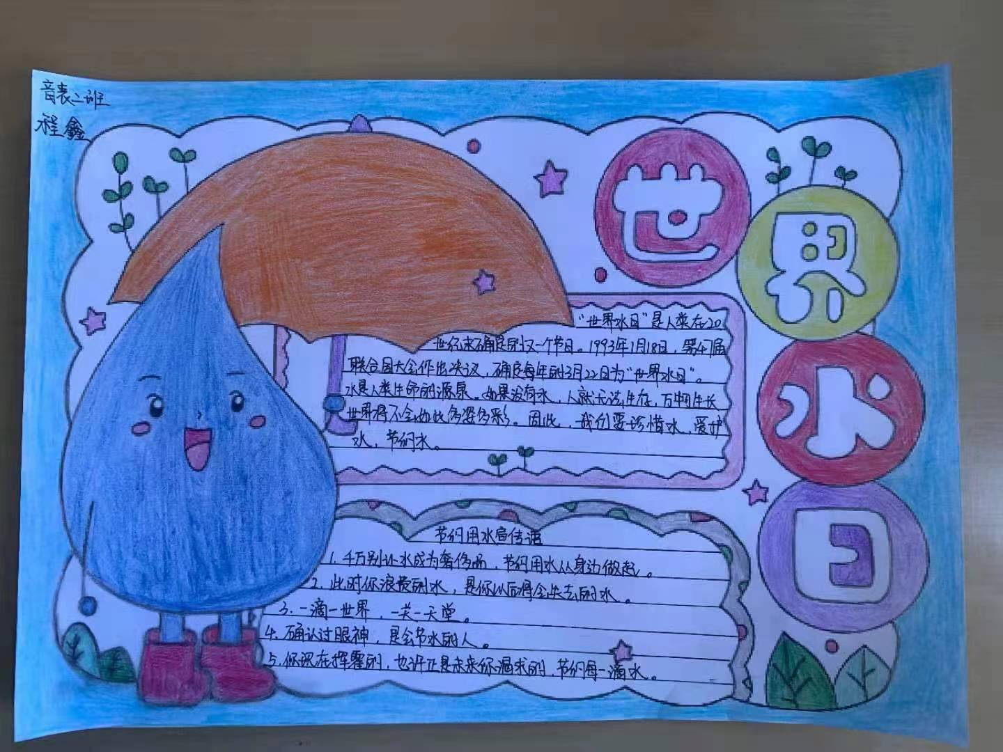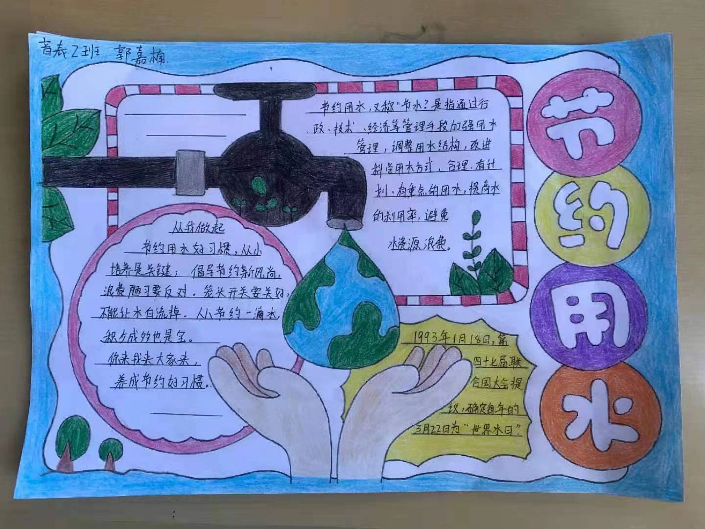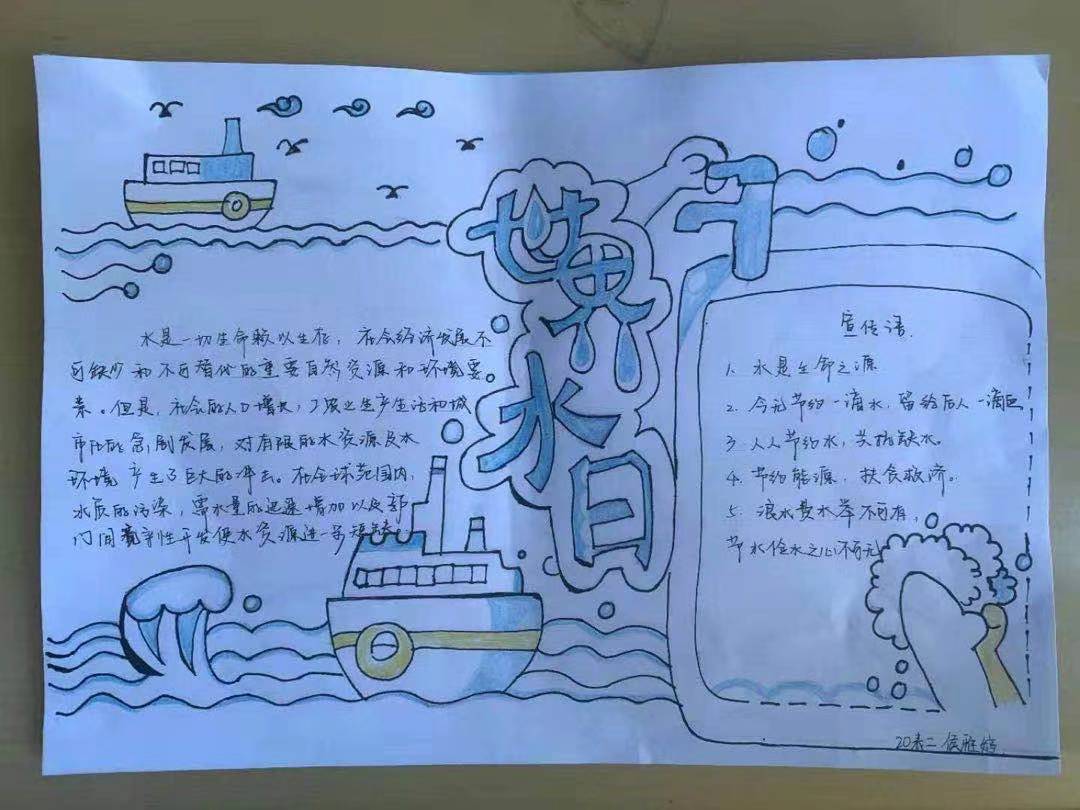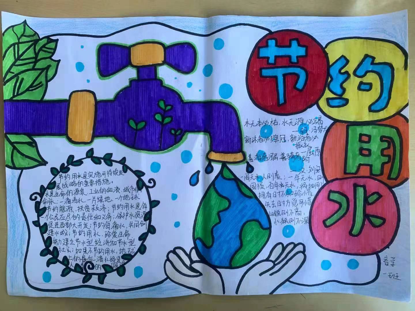 本次活动以手抄报的形式来呼吁大学生节约用水,爱护水资源。作品中,节约用水的主题突出、内容丰富,造型设计有创意,艺术感、氛围感强烈。 最后每个班级选出三份优秀手抄报作品,予以鼓励表扬。