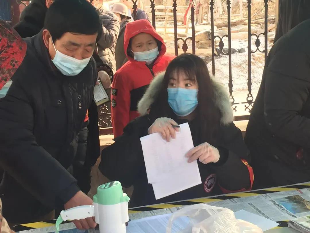 她在河北省秦皇岛开发区韩兴庄村口做志愿者服务,在防疫志愿服务中她的工作是:为出入的村民消毒,测量体温及返乡人口信息记录。