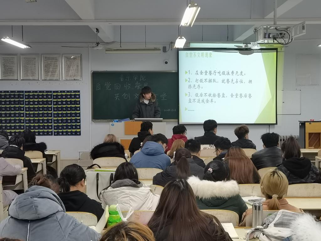 为引导大学生文明就餐、养成良好的就餐习惯。12月22日晚,伟德国际victor1946在二楼合堂开展“自觉回收食堂餐具,共建文明食堂”主题活动。