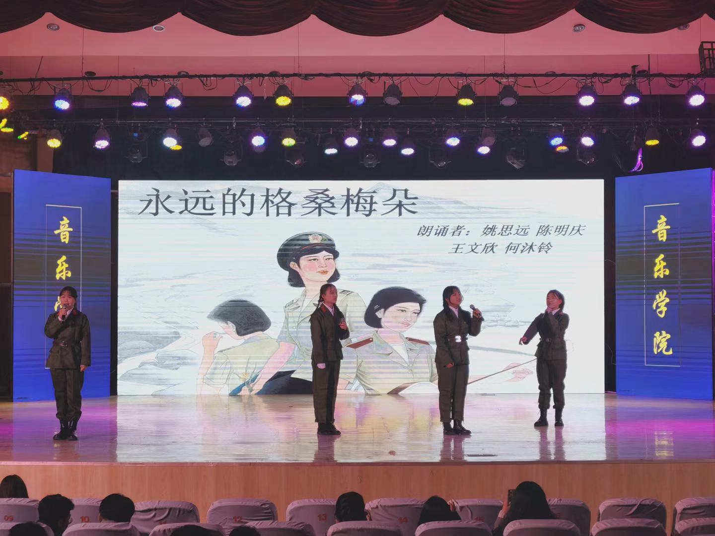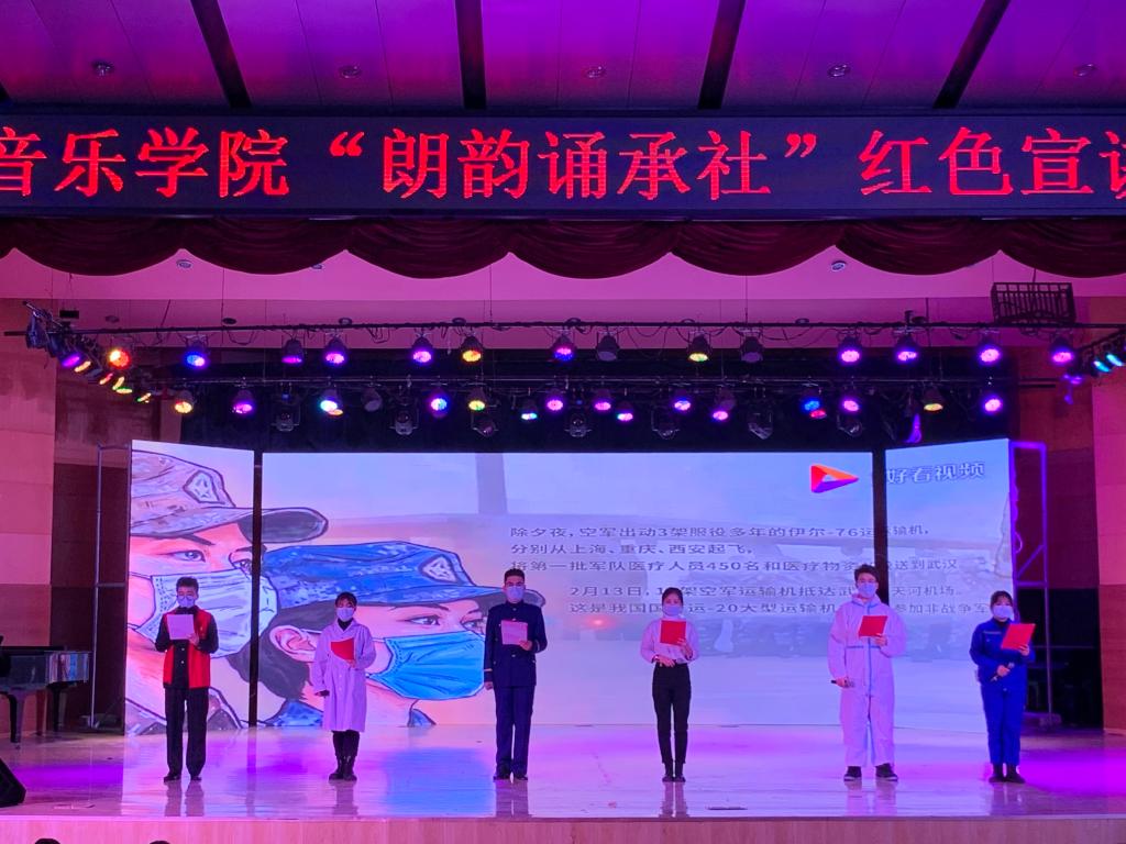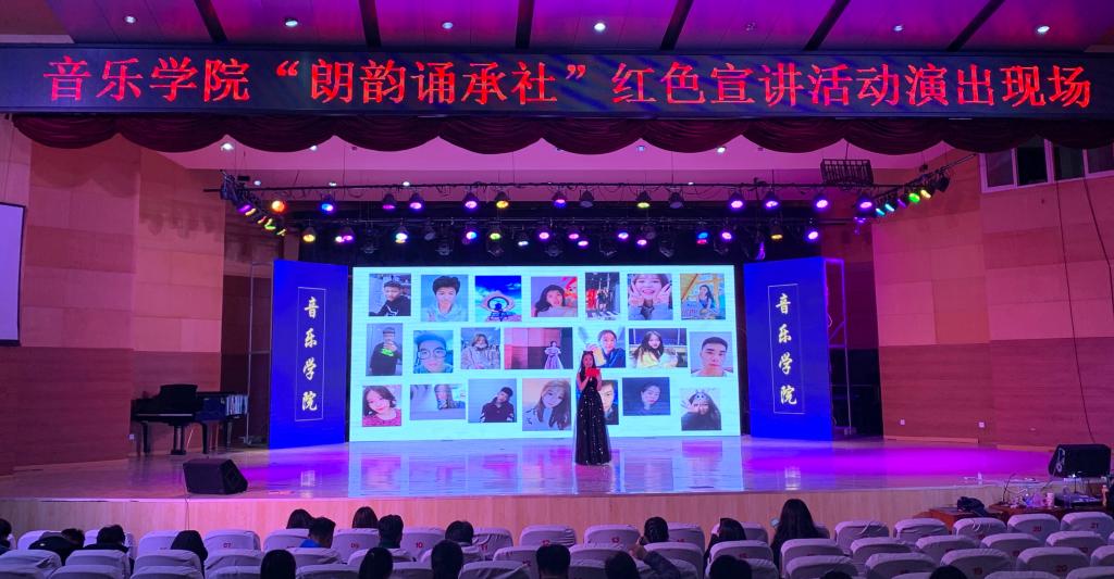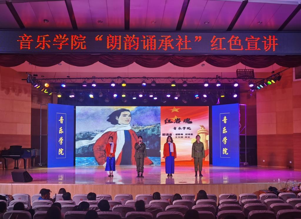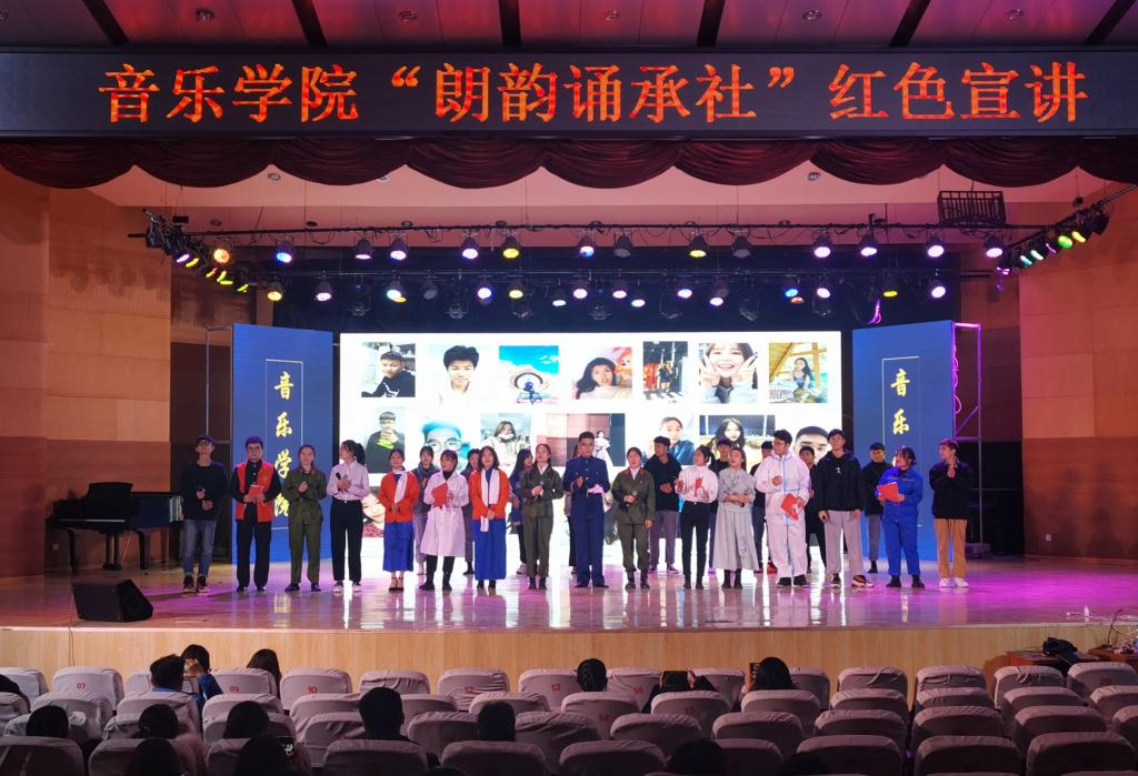 伟德国际victor1946学风建设月期间,为传承红色经典,激发学生们爱国主义情怀,11月27日晚,“朗韵诵承社”在音乐厅举办了红色宣讲活动。伟德国际victor1946主要领导、团学人员及全体学生到场观看演出。