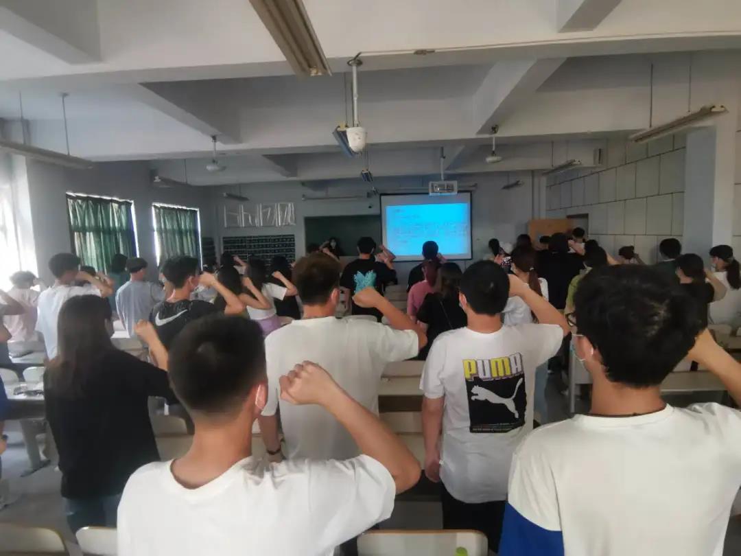 2019级各班学生代表依次上台发言,向大家提出了复习备考的建议,表明了端正考风考纪的决心。随后,全体参会学生起立宣誓,承诺自觉遵守考试纪律,拒绝舞弊、诚信应考。
