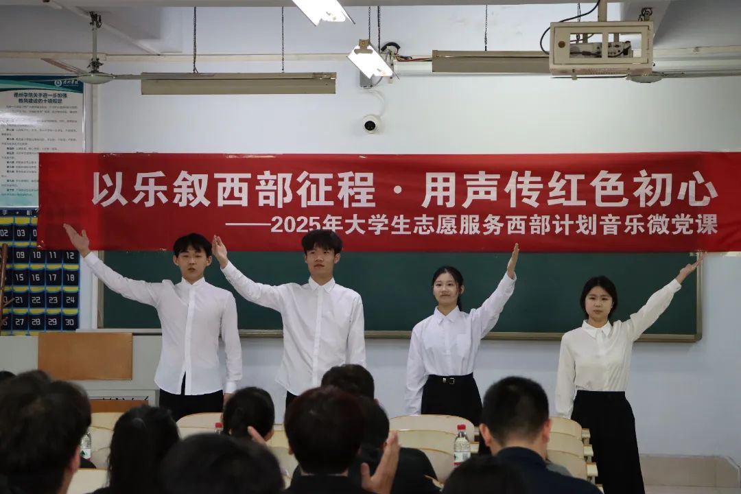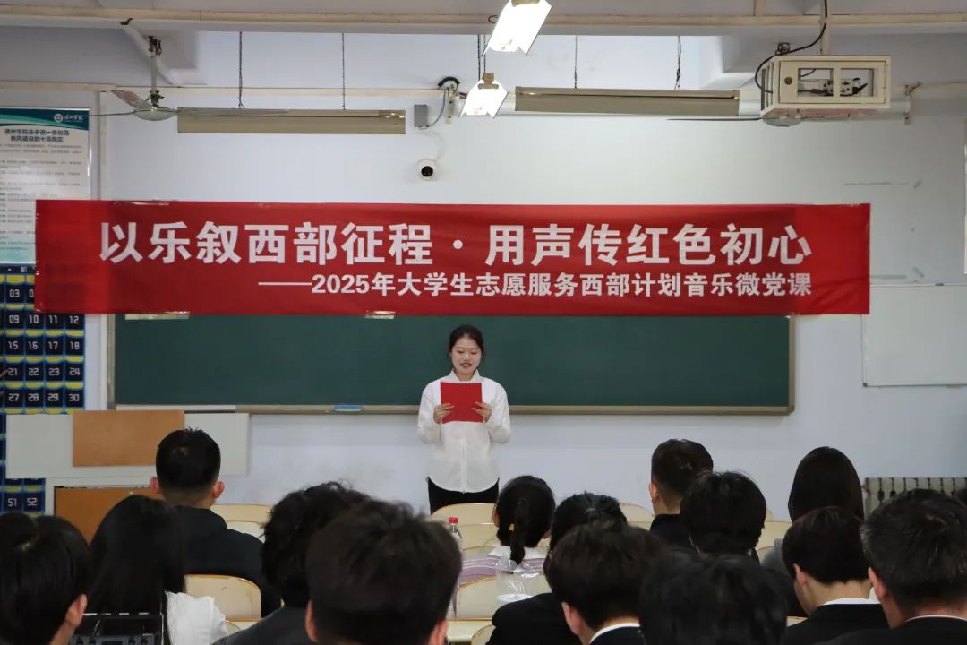 4月15日,一场特殊的主题党日活动在伟德国际victor1946二楼合堂举行。活动紧扣“红色初心”与“西部征程”主题,通过朗诵、情景演绎、乐器表演等形式,生动展现了青年学子扎根西部、服务基层的初心与担当。这是伟德国际victor1946“以乐叙西部征程·用声传红色初心”西部计划系列宣传活动之一。