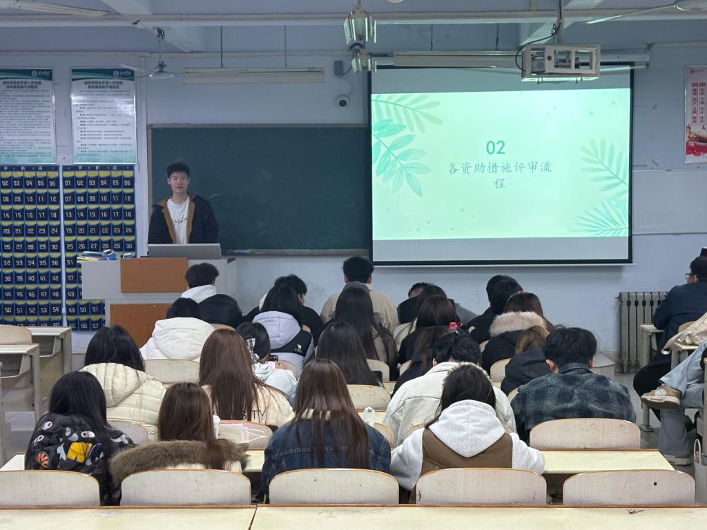班会中,青志部负责人围绕国家助学贷款、国家奖助学金、勤工助学、困难补助、学费减免及校内各项资助措施,进行了全面细致的政策解读。从申请条件的精准界定,到评审流程的规范步骤,再到资金发放与管理的具体要求,通过案例讲解、政策条文拆解等方式,确保每一位学生都能清晰掌握核心内容,让国家资助政策真正做到入脑入心,帮助家庭经济困难学生打消顾虑、安心求学。