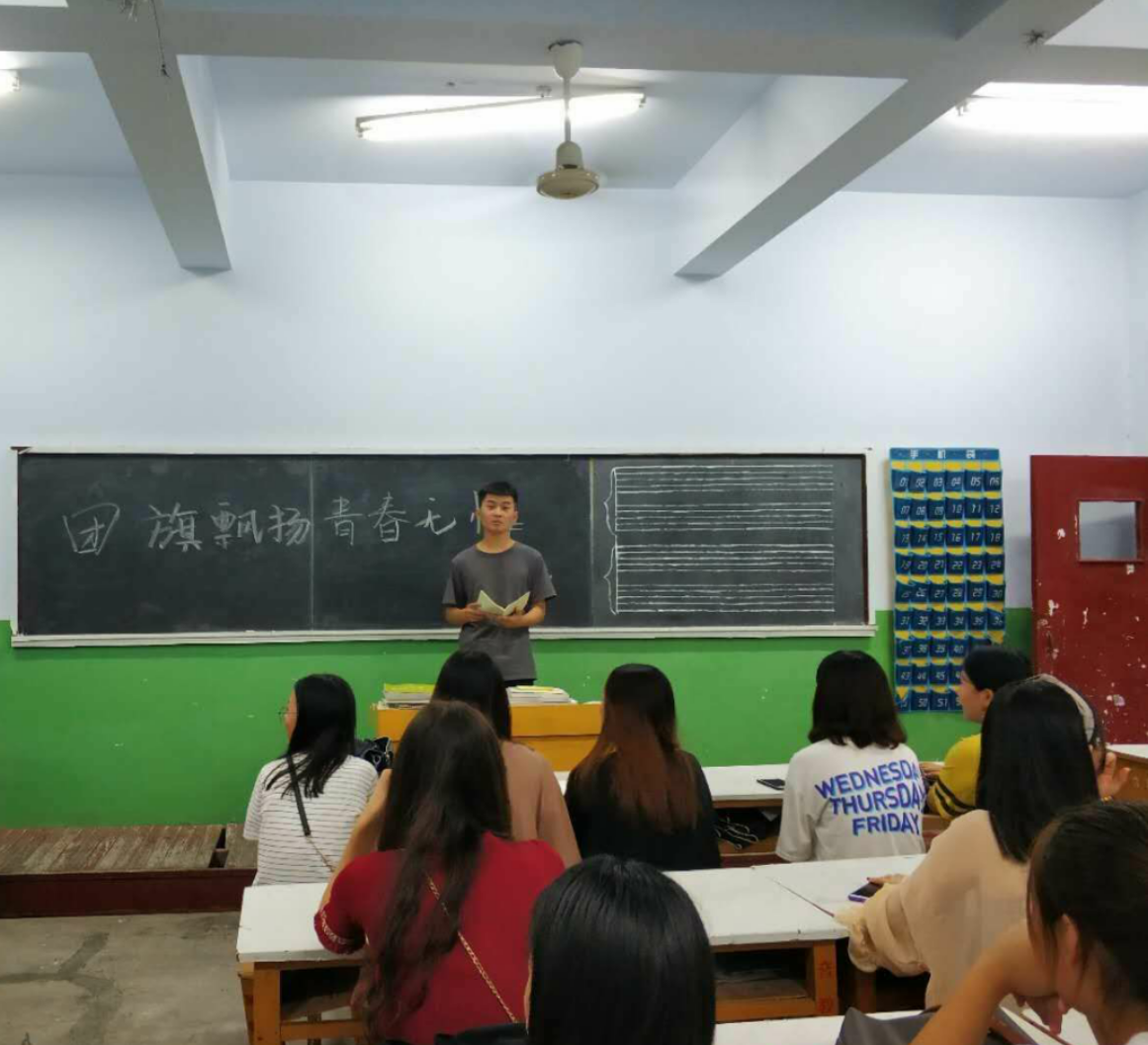 2018年 5月15号,伟德国际victor19462017级音学二班在1008教室开展“团旗飘扬,青春无悔”的主题班会活动。