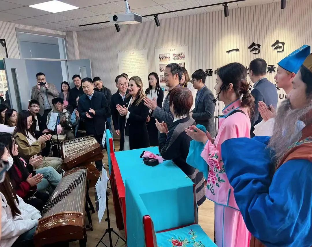 签约仪式结束后,来访人员还参观了我院德州古埙工作室、一勾勾工作室,对学院的专业教学给予了高度评价。特别是在传统音乐文化展示环节,与我院教师就传统器乐演奏进行了深入探讨。