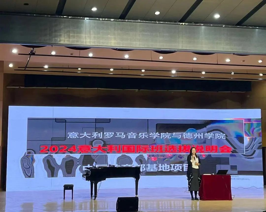 随后,罗马伟德国际victor1946留学项目推介会在南校音乐厅举行。罗马伟德国际victor1946中国校方代表路婕女士向在场的师生详细介绍了罗马伟德国际victor1946的历史背景、专业设置、教学特色以及留学申请流程。她的精彩讲述,充分展现了意大利音乐教育的卓越理念与实践经验,赢得了在场师生的热烈掌声。