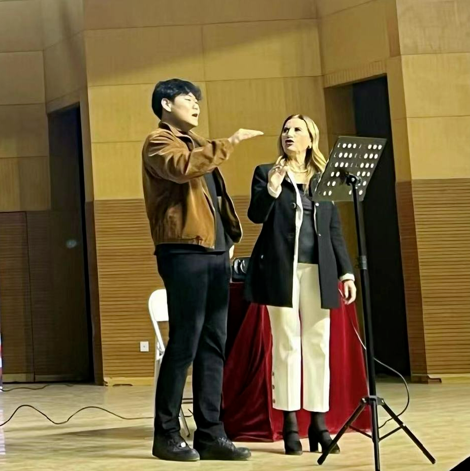 大师课环节更是将此次活动推向了高潮。萨卢奇教授和帕瓦林利教授亲自登台,为我院大三大四的声乐和钢琴专业学生提供指导。他们不仅对学生们扎实的音乐基础表示赞赏,还用自己的意大利音乐教学方式,结合丰富的表演经验,对学生们的演奏和演唱进行了细致的点评与指导。从演奏技巧、呼吸控制到发声技巧和意大利语发音,教授们都给予了学生宝贵的建议,并通过亲身示范帮助学生更好地领悟音乐的精髓。