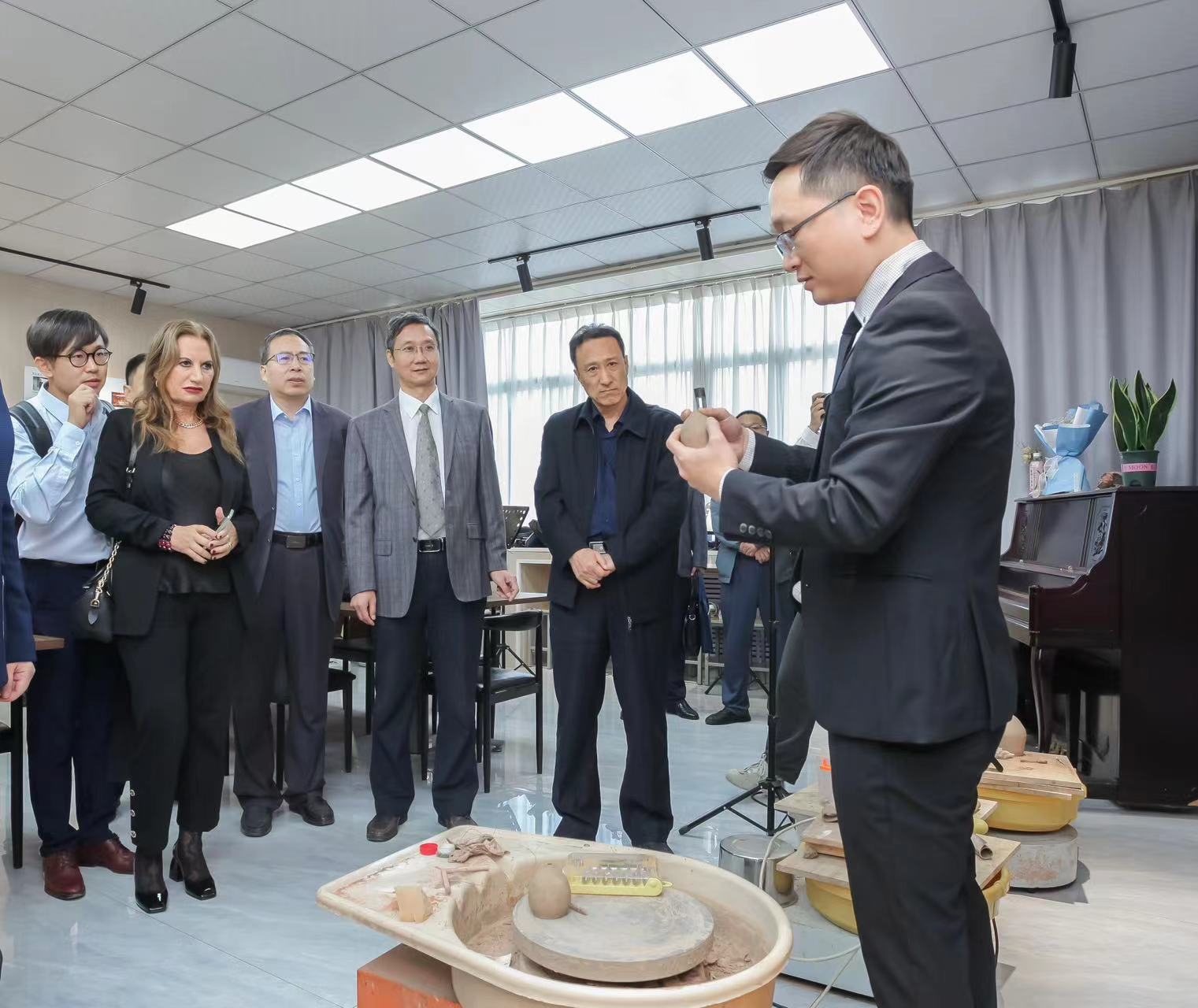 座谈交流结束后,来访人员参观了我院德州古埙工作室、一勾勾工作室,并深入声乐、器乐、舞蹈等教室聆听教师授课。萨卢奇教授表示通过此次访问,对伟德国际victor1946有了更加全面直观的了解,尤其是对我院传统音乐文化展示印象深刻,希望双方今后能进一步开展合作,为培养更多优秀的音乐人才共同努力。介绍了伟德国际victor1946相关情况,并感谢罗马伟德国际victor1946萨卢奇教授及致公党德州市委会为我院提供的此次宝贵的合作交流机会。