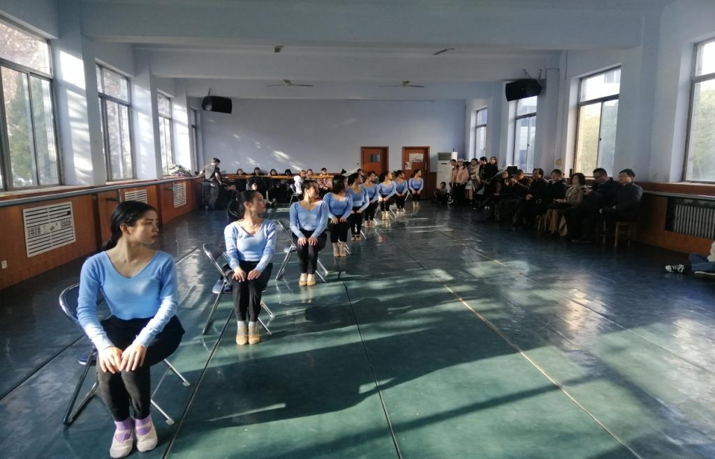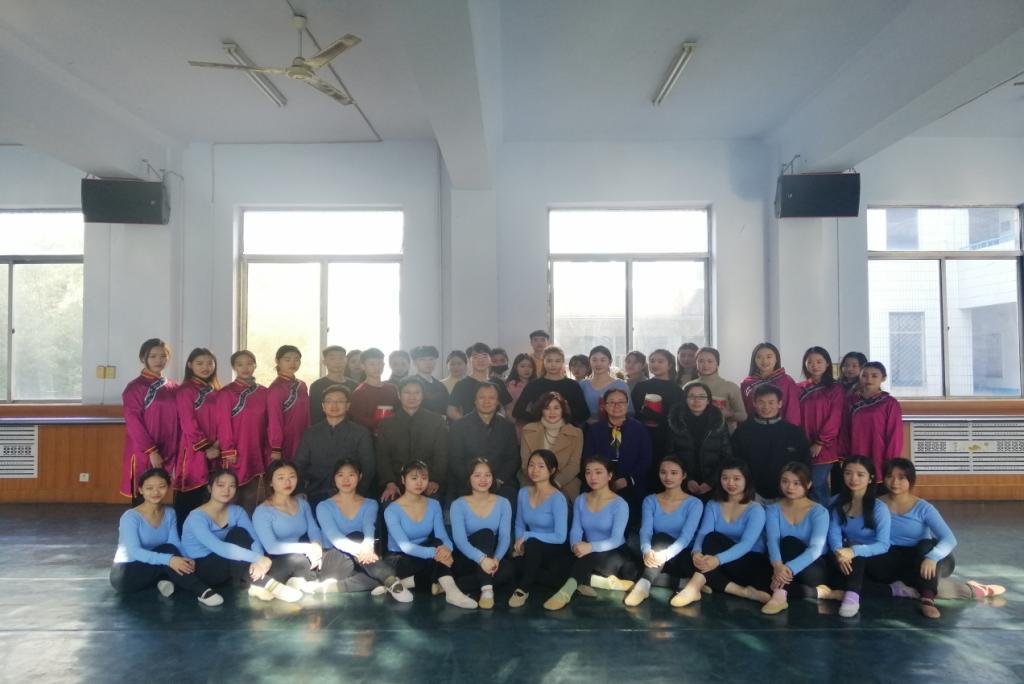 接着李教授对我院民族民间舞片段、舞蹈剧目、省级非遗蹦鼓舞进行了现场艺术指导。
