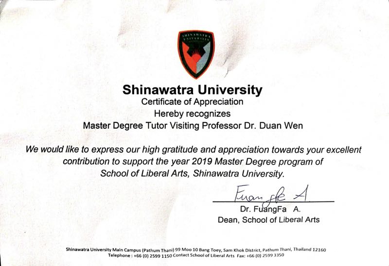 伟德国际victor1946副院长段文教授受聘为泰国西那瓦大学硕士生导师