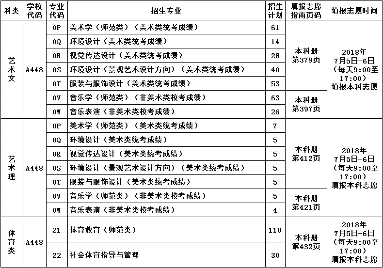 二、本科艺体类各专业在填报志愿指南上页码