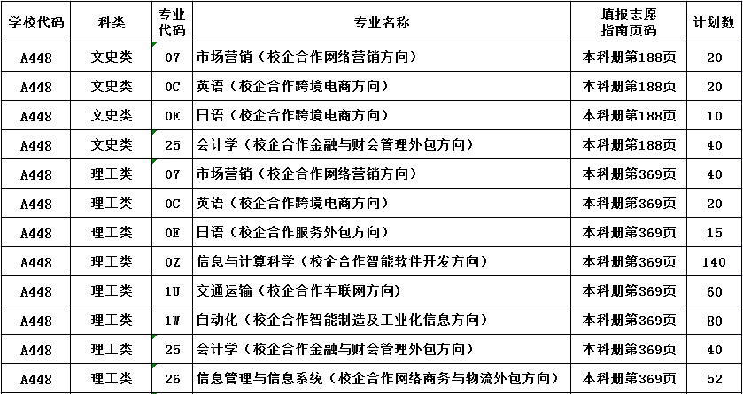 三、本科校企合作办学各专业在填报志愿指南上页码