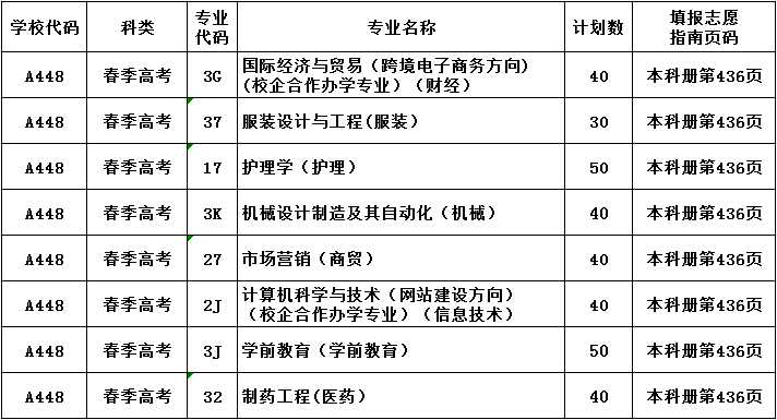 四、本科春季高考类各专业在填报志愿指南上页码