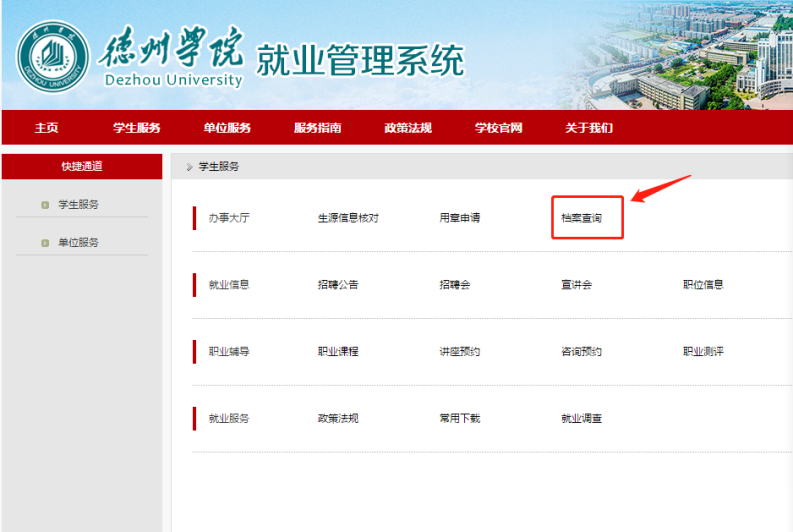 1.登录伟德国际1946就业管理系统。请点击“学生服务”