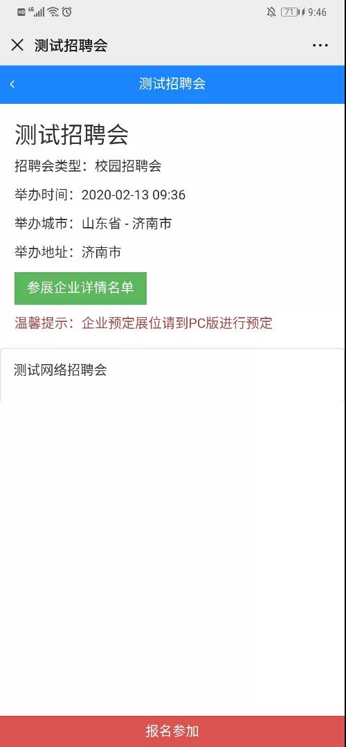 方法二:单位进入网络招聘会大厅点击单位报名参加即可