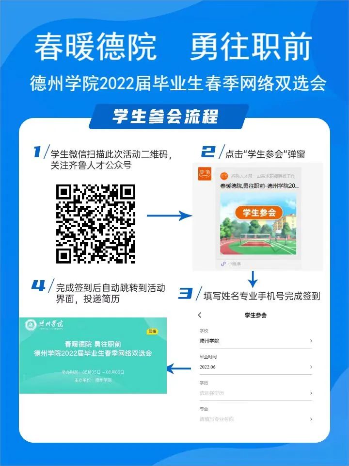 手机微信扫码关注“大众人才网”微信公众号,企业和毕业生分别点击相关按钮进入伟德国际1946校招端口,点击报名按钮,注册或登录已有账号即可直接参与。