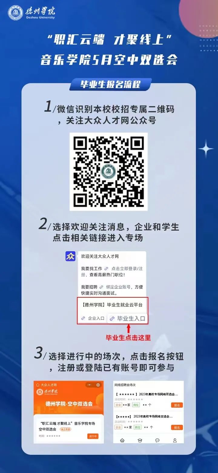 手机微信扫码关注“大众人才网”微信公众号,企业和毕业生分别点击相关按钮进入伟德国际1946校招端口,点击本学院报名按钮,注册或登录已有账号即可直接参与。