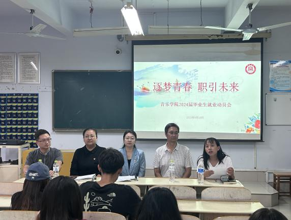 会上,学院行政负责人段文首先从当前社会发展与人才需求的角度指出专业提升对人才培养以及就业创业的重要性,鼓励考研学生立足国际国内两条线,拓宽就业思路,认真准备,刻苦学习。随后,就业工作联络人唐恒新从就业形势、就业方向、近期就业工作安排三方面进行阐述,希望全体毕业生树立正确的就业理念,先就业再择业,立足专业,并结合不同职业实现自身多元化发展。辅导员陈璨勉励在场毕业生要厚植家国情怀,勇担社会责任,立志到基层、去西部、在祖国最需要的地方建功立业。抢抓就业黄金期,积极寻求适合自己的就业岗位,学会主动出击,不断提升就业竞争力。最后,党委负责人王桂英通报了2023届毕业生就业情况及就业工作经验,鼓励毕业生努力提高岗位胜任力和就业竞争力,积极回应国家和社会对音乐人才的需要,并强调学院会多措并举为毕业生群体提供各种就业指导服务,帮助毕业生们早日就业。