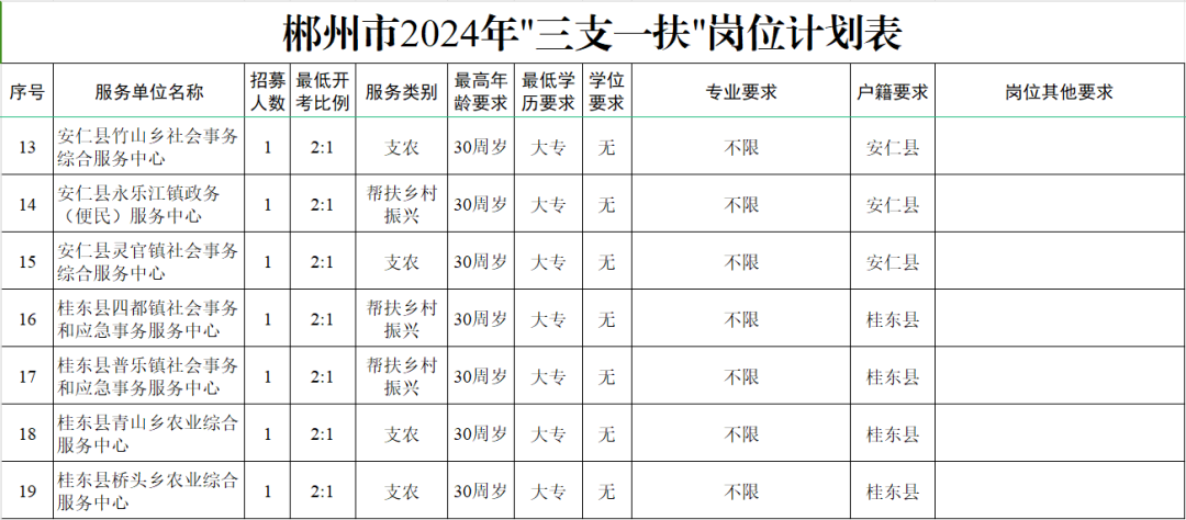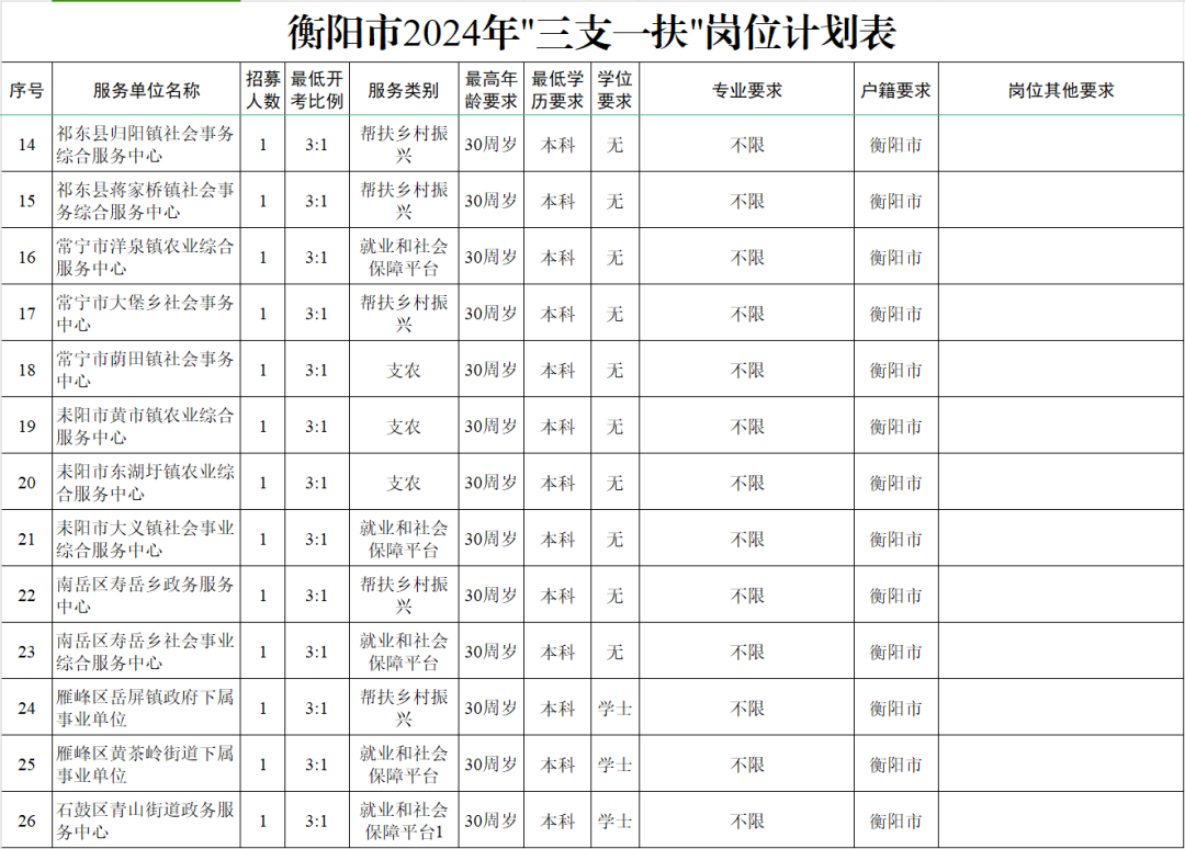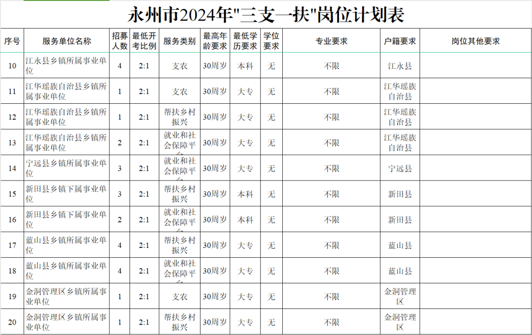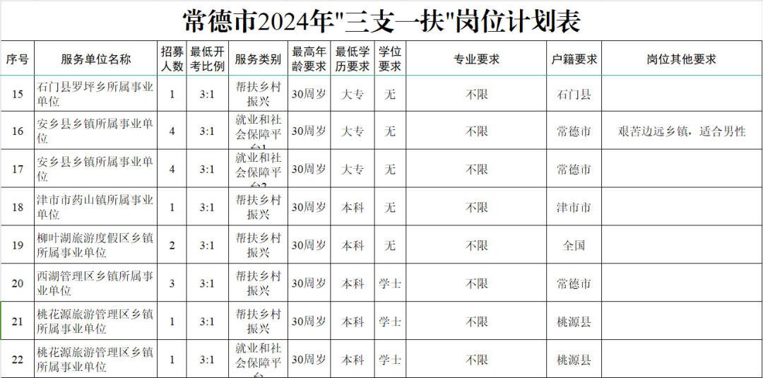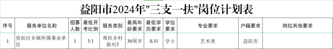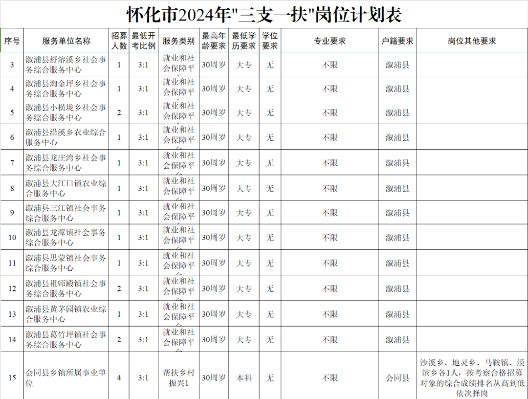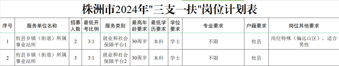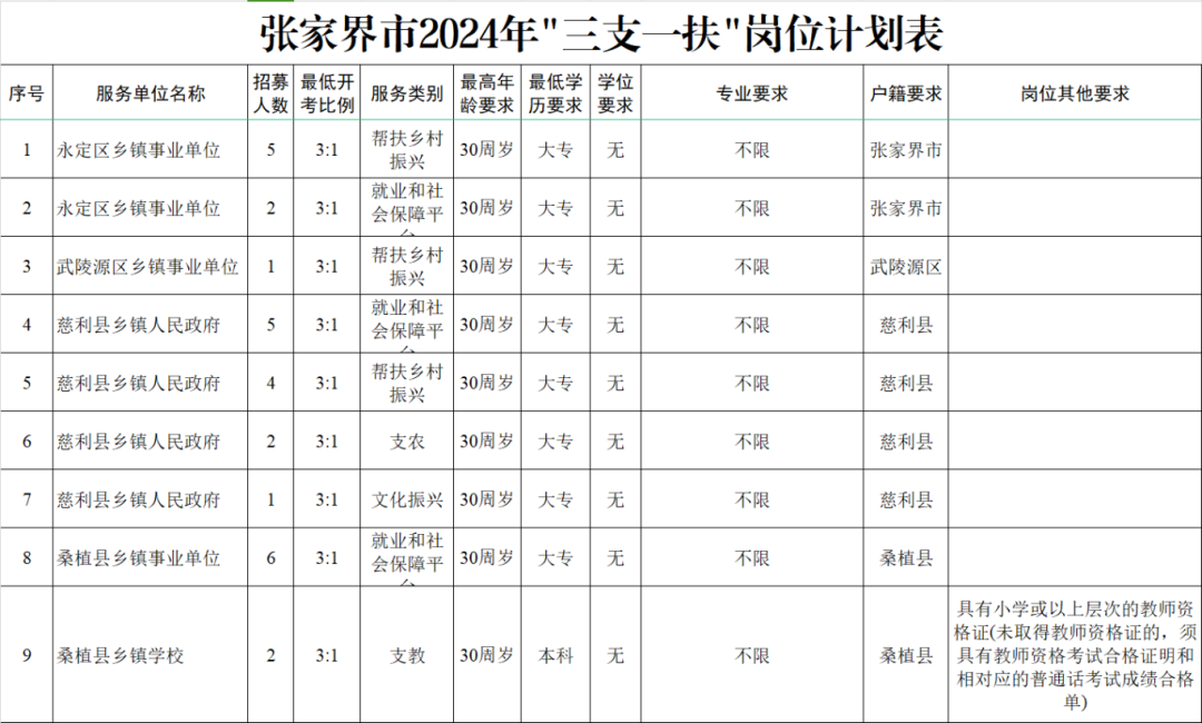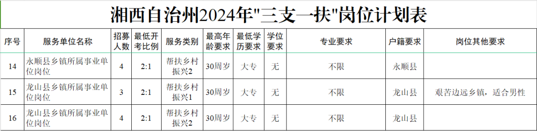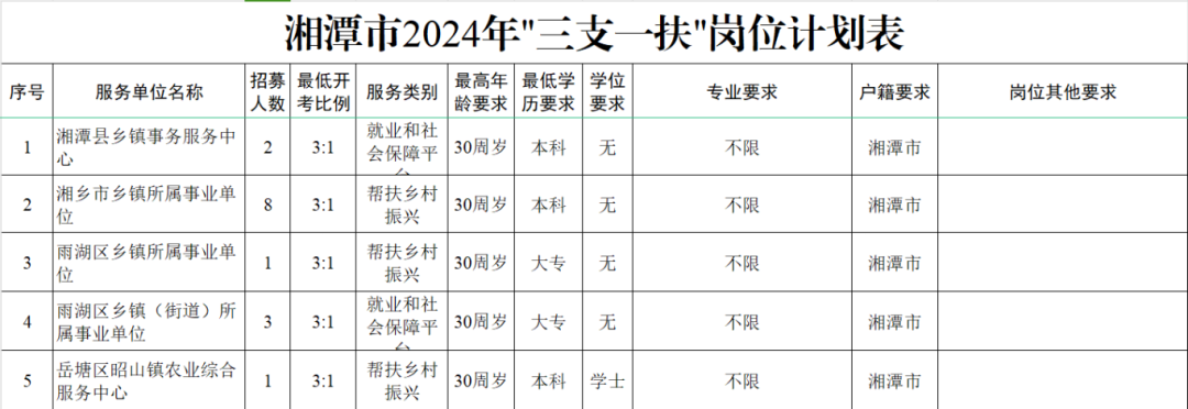 (三)开考比例 笔试开考比例以《湖南省2024年“三支一扶”岗位计划一览表》(附件1)为准。