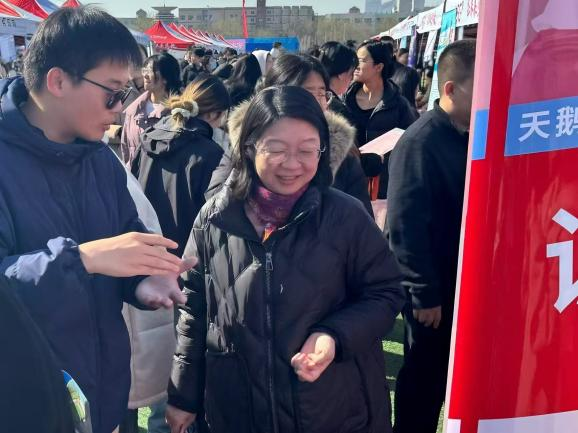 招聘会现场,学院党委书记带队重点走访了德州市兴德高级中学、聊城文苑中学、山东魏桥集团、晓雯音乐培训学校和爱弦艺术培训学校等多家用人单位,并详细介绍2025届毕业生专业方向、人才培养特色,精准推荐毕业生就业。现场多名学生与用人单位达成初步签约意向,涉及音乐教育、艺术策划、文化运营等岗位。同时,与企业围绕“产教融合”“就业创业基地共建”等议题展开洽谈,初步与5家企业达成校企协同育人合作意向。此外,学院还邀请家长代表到场,与企业面对面沟通,增强家校协同育人实效。