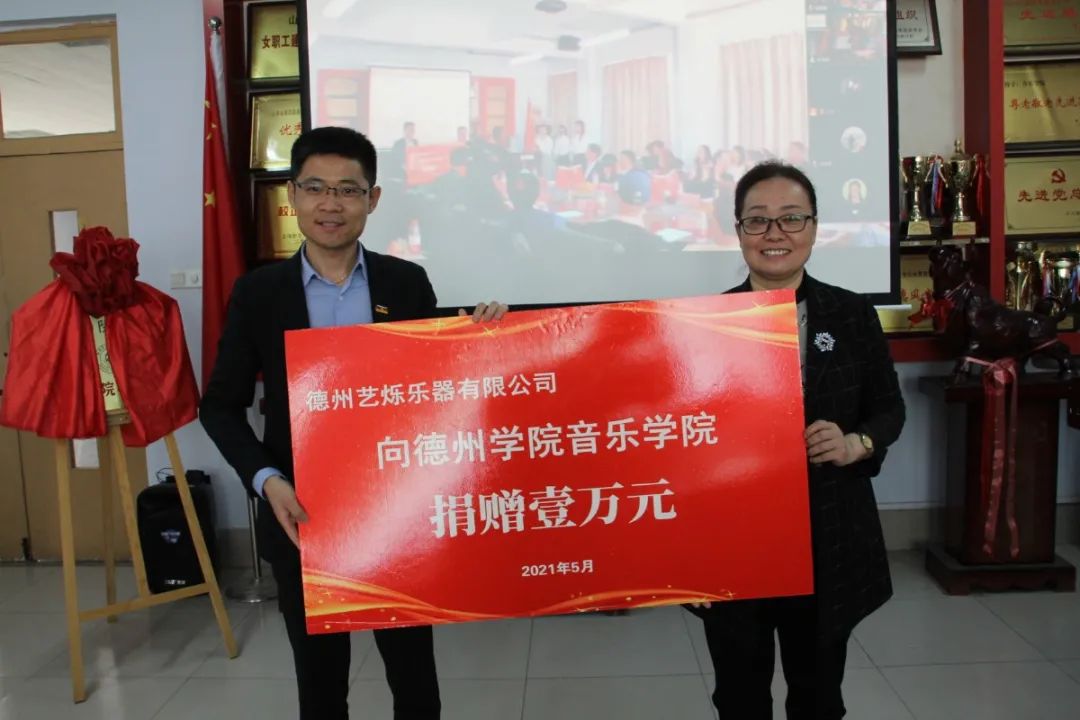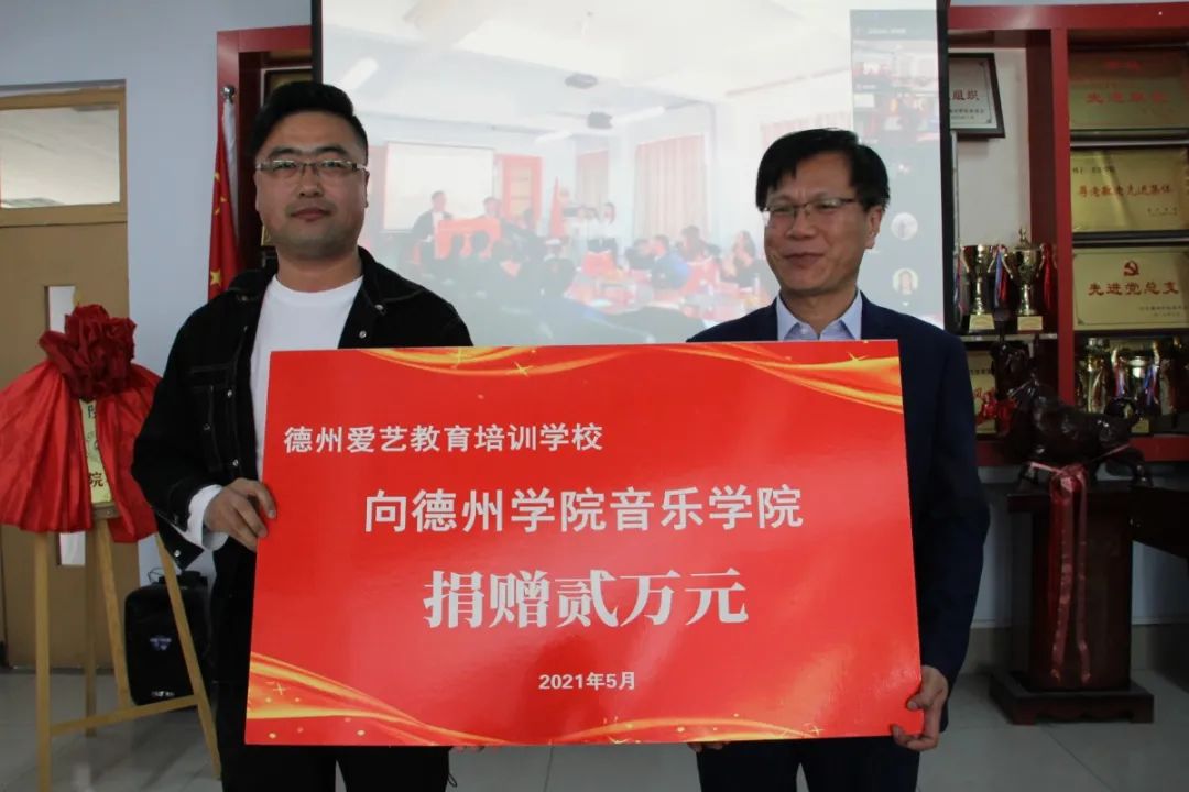 会上还举行了音乐学院校友捐赠仪式。伟德国际victor19462009届校友孙建与2012届校友司福山上台捐赠,伟德国际victor1946党总支书记刘志华与院长田屹代表学院接受捐赠。