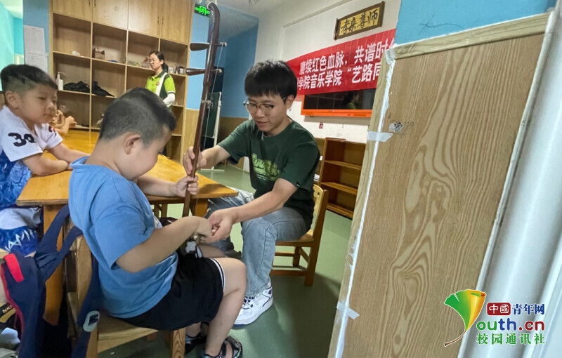 在临沂通达路幼儿园教授孩子用二胡弹奏红色歌曲中国青年网 通讯员 陈璨 供图