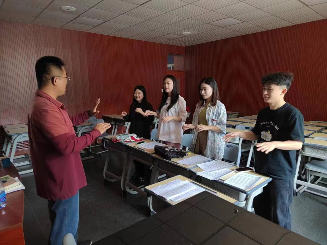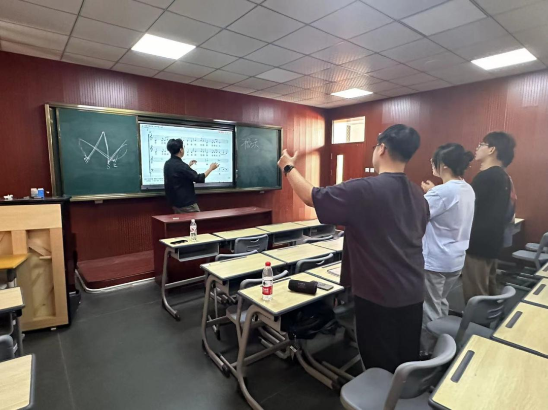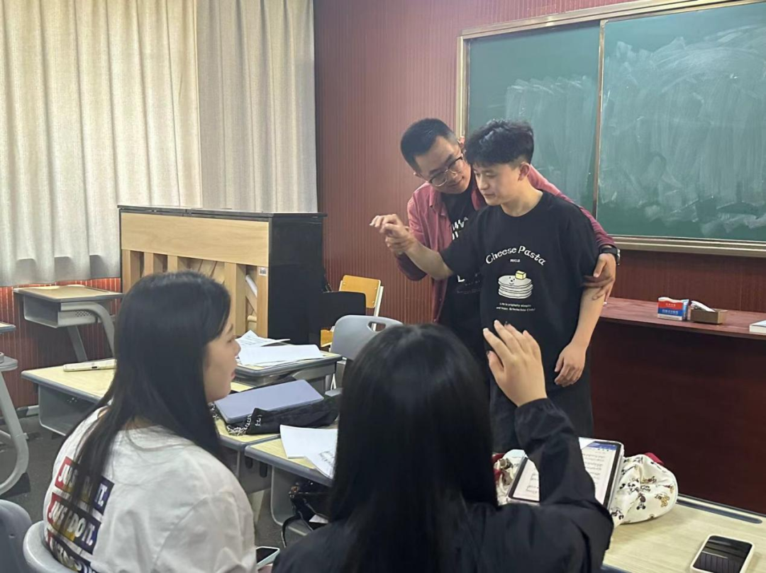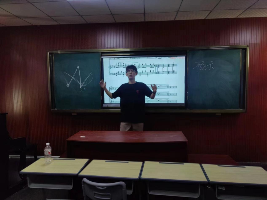 参赛选手根据师范生从业技能大赛的比赛要求与规则进行了合唱指挥与即兴弹唱的现场展示,两位老师对参赛选手进行了一对一的指导,并提供了许多实用的指挥策略和技巧。