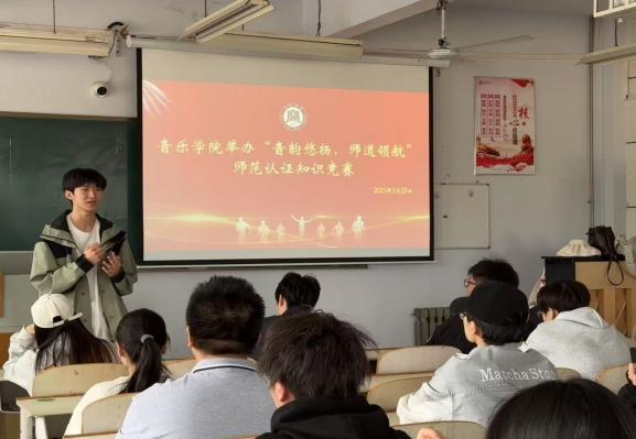 本次竞赛以"音韵悠扬,师道领航"为主题,聚焦师范专业认证核心内容,围绕教育理念、课程设计、教学评价等模块展开,同时结合语言表达与音乐艺术鉴赏等特色环节,构建专业知识与审美素养融合的考核体系。活动通过创新题型设计,引导参赛者深入思考教育实践与艺术创新的结合路径,全面检验师范生的理论储备与实践能力。竞赛现场气氛热烈,选手们以扎实的专业功底和灵活的应变能力展开角逐,最终评选出一二三等奖若干名,展现了学院师范专业教育的丰硕成果。