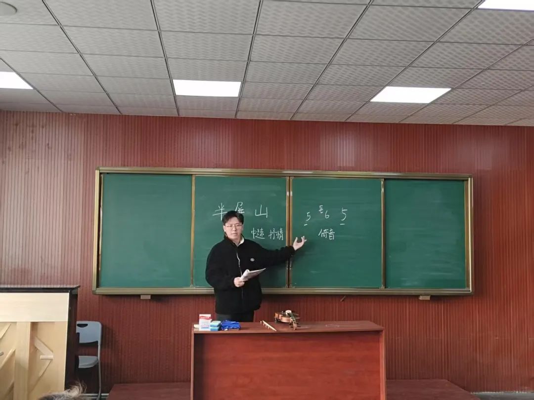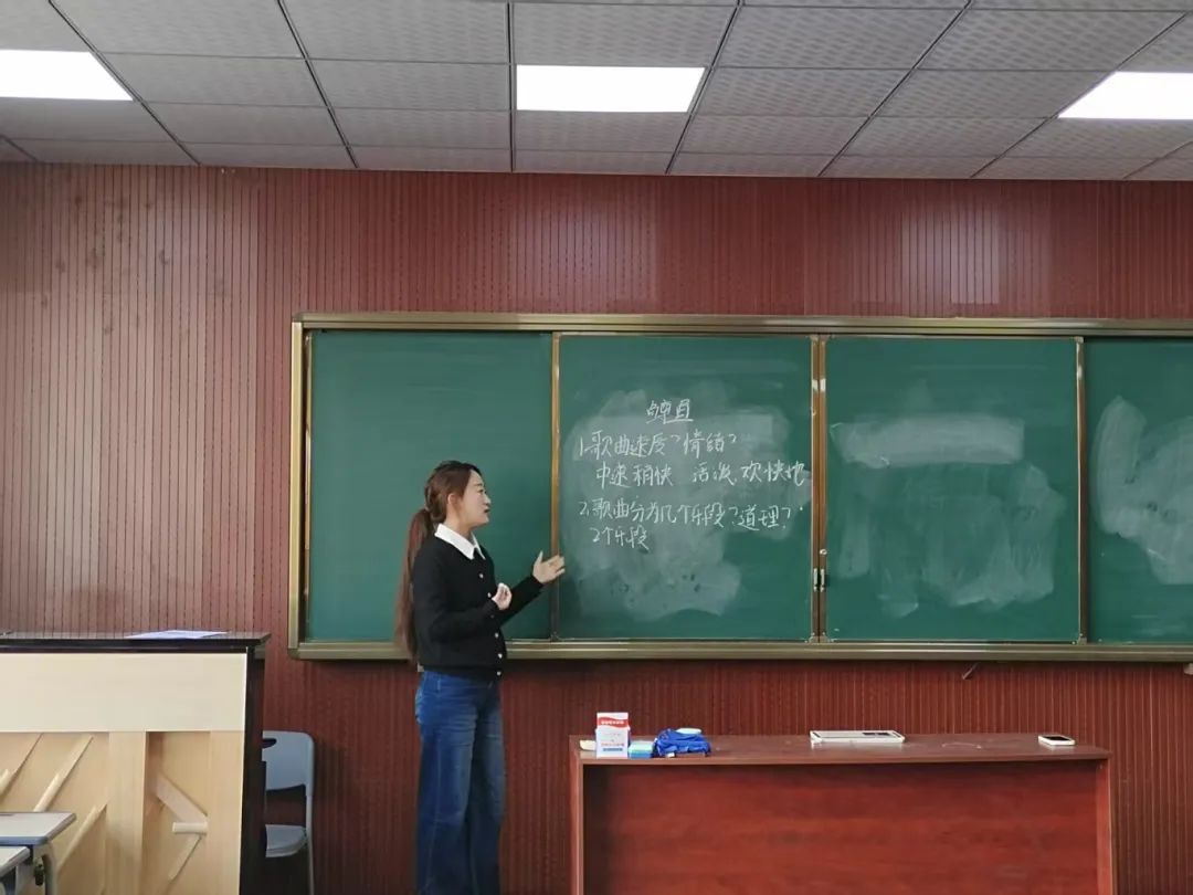 本次大赛严格对标《山东省师范类高校学生从业技能大赛》标准,选题聚焦现行人音版中学音乐教材核心章节,要求选手在10分钟内完成模拟授课、板书设计及弹唱技能展示。评委组从“教学设计创新性”“课堂互动实效性”“思政融合自然度”“教学语言感染力”等维度进行综合评价,并针对每位选手的试讲表现提出个性化建议。