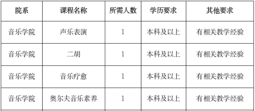 四、资格证书要求:高级中学、初级中学音乐教师资格证,普通话二级乙等及以上